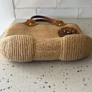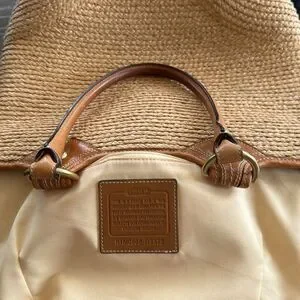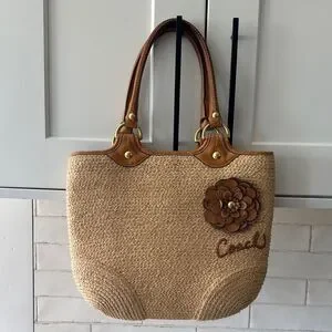 Coach Bleecker Natural Straw Tan Tote Handbag with Leather Accents Boho Vacation