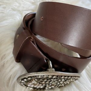 Brown Med Belt Genuine Leather Rhinestones 85CMs