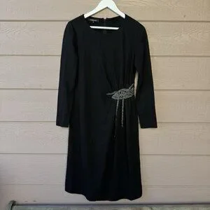 LAFAYETTE 148 BlackSilver Beaded Embellished Waist Ponte Knit Cocktail Dress Sz6