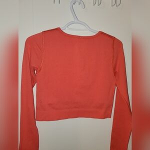 Women’s Ebb to Street long sleeve shirt in the Pale Raspberry colorway, size 6. This is the cropped version with a built-in bra, made from a ribbed, lightly textured fabric that hugs smoothly and looks polished without trying too hard.