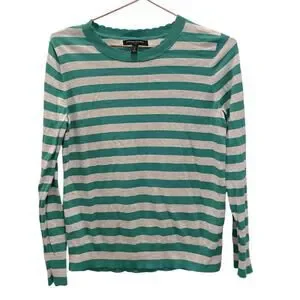 Banana Republic Striped Scalloped Neck Top - Petite Small