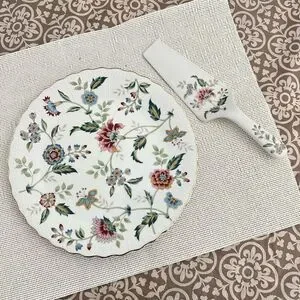 Andrea by Sadek Floral Scalloped Edge Buckingham Cake Plate with Server Spatula