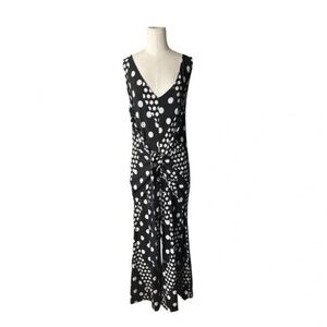 LAURIE FELT - Tie-Front Sleeveless Jumpsuit - Petite - Black Dot in Size XLP