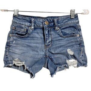 American Eagle Outfitters Distressed Denim Jean Shorts Size 00 Blue Destroyed