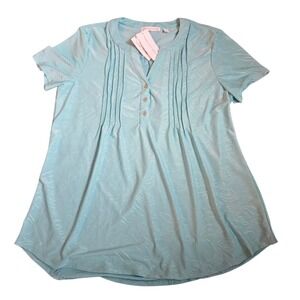 🌿 Notations Aqua Floral Tunic Top – Short Sleeve, Button Front, Size XL NWT