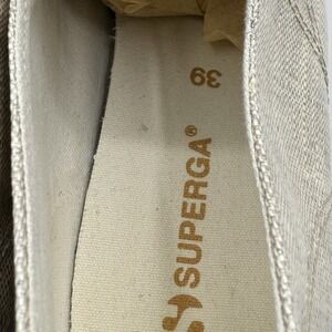 These are the coolest pair of Superga I have found to date! I haven't seen another pair like them and wish they were my size. They are a shimmery linen in a champagne gold color. They are a woman's size 8. The tread shows dirt staining, but the upper is great! Please see all photos as they are the best description ! Thank you for looking and as always happy shopping