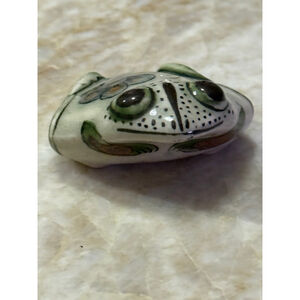 TONALA KEN EDWARDS Home Decor Ceramic Frog Figurine White Green Mexico rare