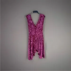 Silence + Noise Corina Velvet Drop Waist Midi Dress Medium Raspberry Asymmetric