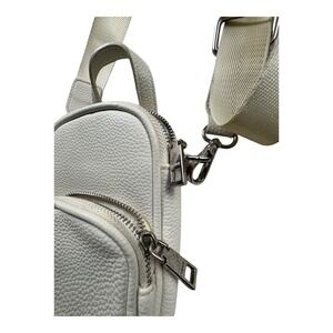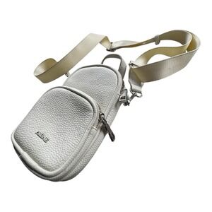 Prüne Light Gray Pebbled Leather Crossbody Phone Bag Adjustable Strap
