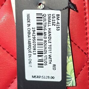 NWT Badgley Mischka Red Quilted Small Handle Tote Bag with Studs msrp $130