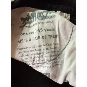 The Levi's Black 541 Straight Dark Wash Denim Casual Jeans are a stylish and versatile addition to any man's wardrobe. These classic fit jeans feature a solid black color with a dark wash finish, perfect for year-round wear. Made of durable denim fabric with a zip closure, these jeans are easy to care for with machine washable instructions. The 5-pocket design with Levi's logo accents adds a touch of style to this wardrobe staple, making them a must-have for any casual outfit.