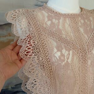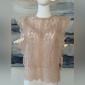 NWT Zara Lace Ruffle Blouse - Blush Pink