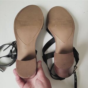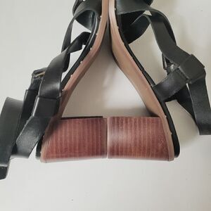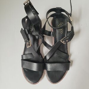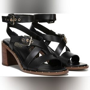 Franco Sarto Women's Halina Leather Studded Block Heel Sandals in Black Sz 8 1/2