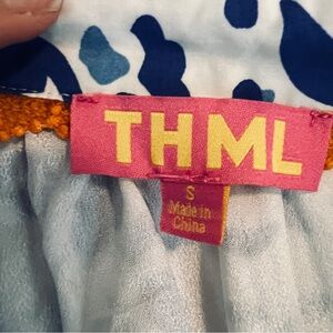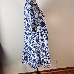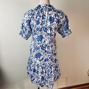 THML White & Blue Floral Puff Sleeve Mini Dress Size Small