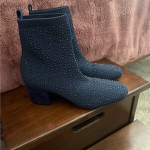 Chic navy booties with sparkling details. Sleek design for versatile wear. Ideal for elevating any outfit. Worn once Very comfortable ankle boots