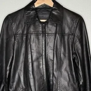 Express leather jacket, black leather jacket womens, Y2K leather jacket, minimalist leather jacket, zip front leather jacket, womens moto jacket, genuine leather jacket, modern leather blazer, sleek leather coat, downtown chic jacket