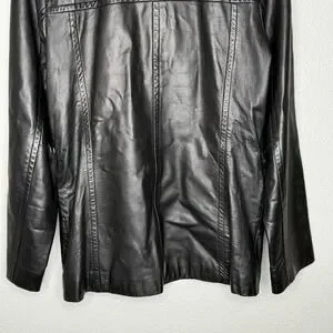 Express Black Genuine Leather Zip Front Jacket Womens Small Y2K Minimal Moto