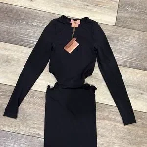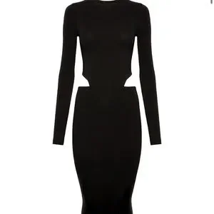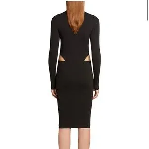 Elegant black midi dress. Long sleeves with cut-out details. Perfect for evening wear.