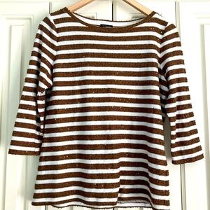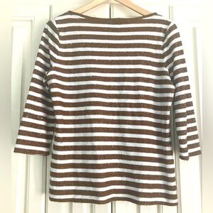 Talbot’s Petites Sequined Striped 3/4 Sleeve Crew Neck Top Size Mp