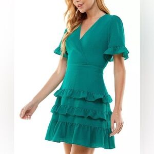 Stacked ruffles bring movement to your look all day or night when you wear this flutter-sleeve City Studios dress.