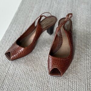 Vintage Axcess Liz Claiborne Brown Croc Leather Peeptoe Slingback Heels Size 9