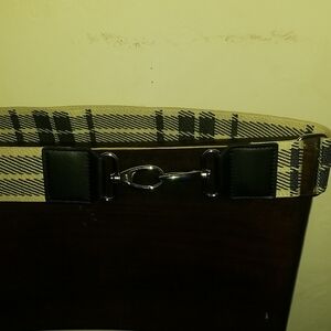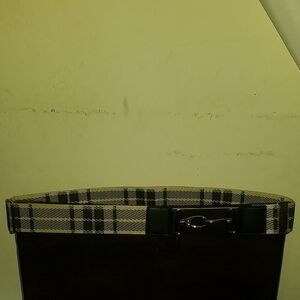 Upgrade any bag with this stylish plaid patterned strap. Perfect for adding a touch of elegance to any outfit or to help during travel. This strap has heavy duty silver hardware that makes putting on or taking off the strap easy peasy. The measurements are approx. 2 in wide and approx. 36 inches in length. You also have the option of going shorter or longer by loosening or tightening the strap. New never used, great for a laptop bag or even a weekend duffel bag.
