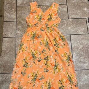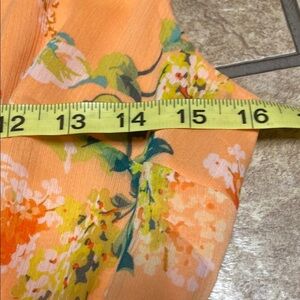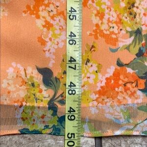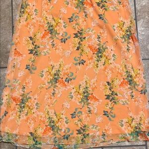 Stylish fully lined orange with floral print dress by Isaac Mizrahi Live! Elastic around the empire waist Perfect for any occasion. Gorgeous!