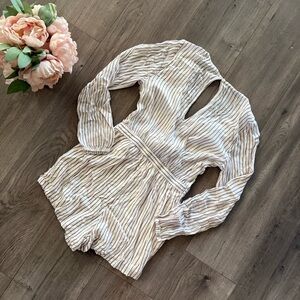 New Abercrombie & Fitch Brown stripe Tie Long Sleeve Romper