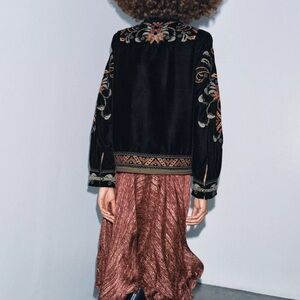 Zara Black Velvet Floral Embroidered Jacket