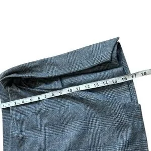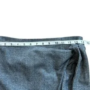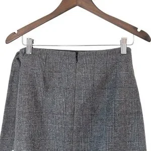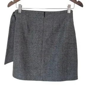 This is a faux-wrap mini skirt with inseam pockets. It's made with a yarn-dyed check fabric that has a slight stretch.