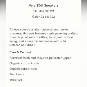 VEJA SDU Rio Branco Alveomesh Sneakers Size 6 NIB