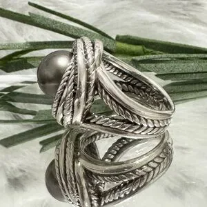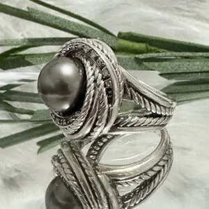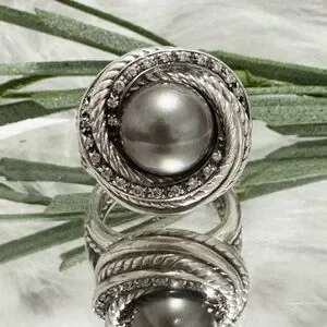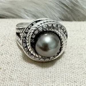 David Yurman Tahitian Pearl Diamond Crossover Ring