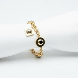 Brand new INC gold-tone charm bracelet featuring bold geometric dangle charms for a modern statement look.
