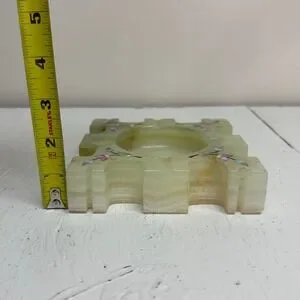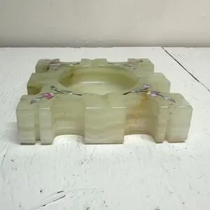 Keywords: onyx decor, stone ashtray, mother of pearl, puzzle decor, castle decor, vintage barware, gemstone ashtray, decorative accent, tabletop decor, unique gift, art deco, collectible, smoker accessory, mop inlay, mother of pearl