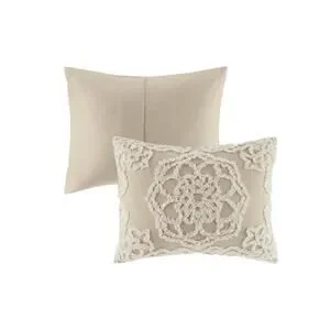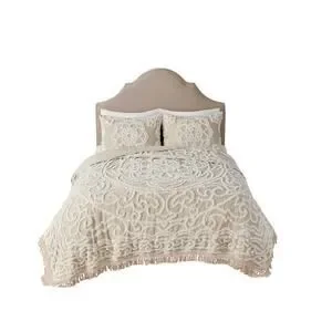 Madison Park King Bedspread Set Beige Chenille Tufted 3pc Luxury Bedding