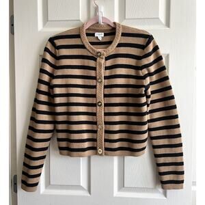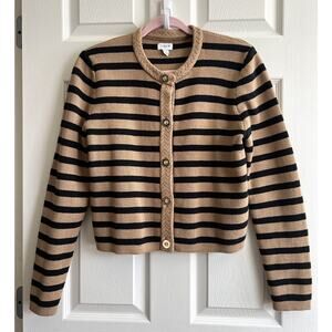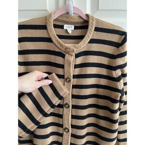 J. CREW Women's 2024 Lady Camel Black Striped Knit Cardigan Sweater Jacket Sz S