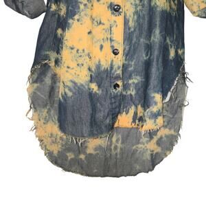 Thrill Jeans Women Medium Button Up Hi Low Shirt Tie Dye Roll Tab Distressed 1.5