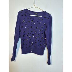 J Crew Embellished Cardigan Sz M Purple 100% Cotton Preppy Knit