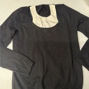 Elegant black sweater with a cream scoop neck. Long sleeves. Ideal for any occasion.