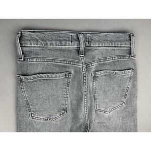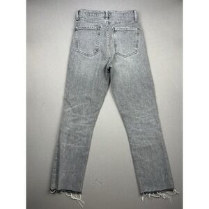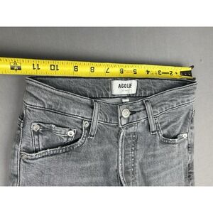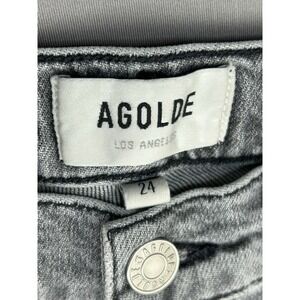 Agolde Juniors 24 Distressed Grey Button Fly Denim Jeans are in preowned condition. They are DISTRESSED, with intentional wear/fading. Please see pics for condition details.