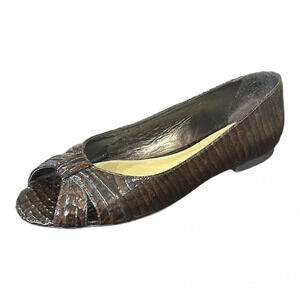 Alex Marie Leather Croc Embossed Open Toe Flats Brown Size 8