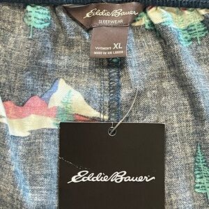 NWT Eddie Bauer Women’s Flannel Pajama Bottoms, Blue with Evergreen Trees, XL