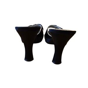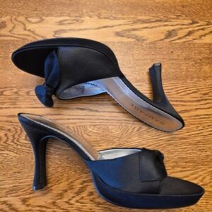 Vintage 90s Rampage Womens 10 Black Satin Bow Mule 3" Heels Open Toe Slide