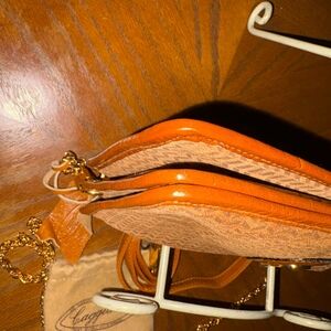 Equipped with a gold-tone chain strap and a detachable leather shoulder strap.