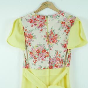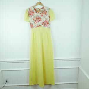 Vintage S M Dress 70s Maxi Butter Yellow Prairie Cottagecore Modest Floral Hippy