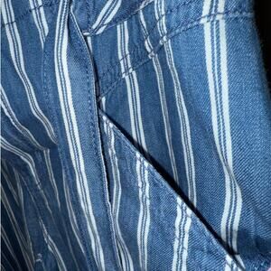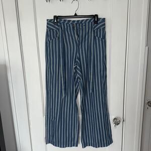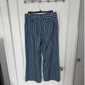 American Eagle Striped Wide Leg Trouser Pant, in gently used condition, has front and back pockets, blue and white striped pattern similar to photos, has belt that ties in the front, wide leg, measurements included, size 6 womens