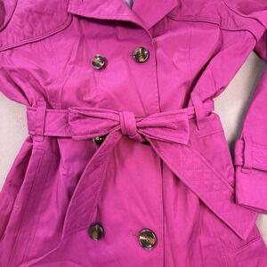 Stay stylish and dry with the London Fog Women's Pink Trench Coat. This vibrant coat features a classic double-breasted design and a flattering belt for a tailored fit. Perfect for adding a pop of color to your wardrobe.