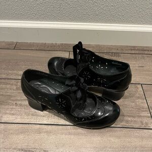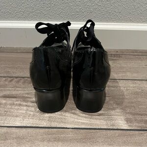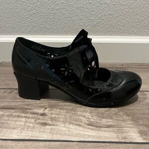 Elegant glossy black heeled shoes by Born. Perfect for stylish outings. Comfortable and chic.