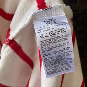 Old Navy Nautical White and Red Striped 100% Cotton Shirt Top Sz Large Tall