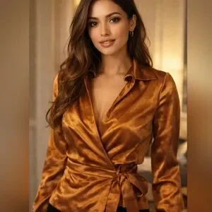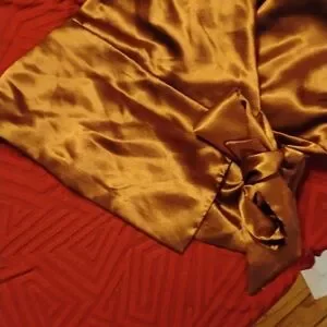 Stylish satin wrap dress in a beautiful copper shade. Ideal for special occasions.19 inch p2p 23 inches long 22 inch sleeve